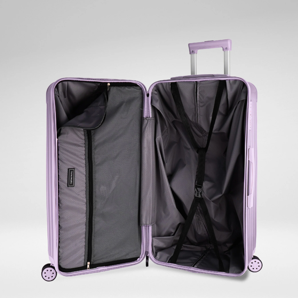 Introducing our chic new arrival, Terminal Trunk. Crafted with precision from ABS + polycarbonate material, it blends durability with style. Travel in style with our sleek luggage bag, combining fashion and function for your every journey. Where style meets functionality.